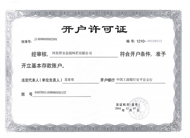 戶名:河北博安金屬網欄有限公司